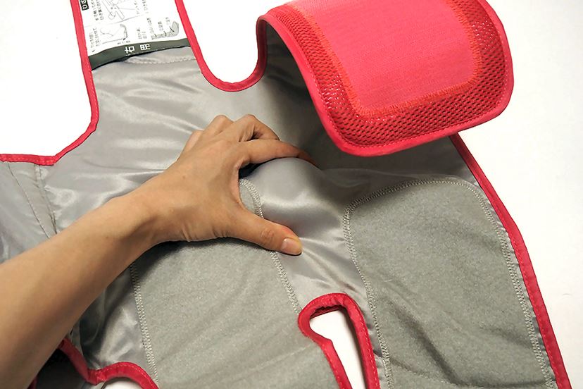 上から1番目と2番目のテープの間部分に、ツボを刺激する「ポイントボール」が仕込まれています。大きさは直径5cm前後で、柔らかなプラスチック風の素材です
