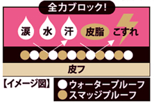 水に強いウォータープルーフ×皮脂に強いスマッジプルーフの