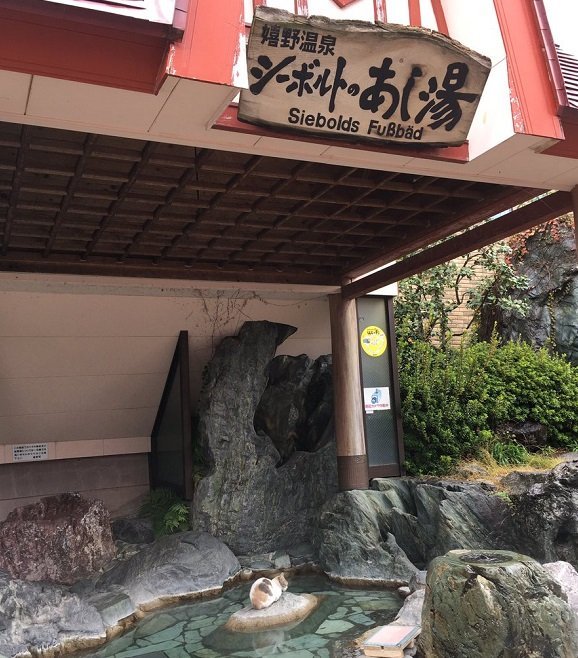 ここは、佐賀県嬉野市。日本の西洋医学に貢献したドイツ人医師・シーボルトが、嬉野温泉に立ち寄ったことにちなんで名づけられた「シーボルトのあし湯」で、うたた寝する猫が話題となっている。