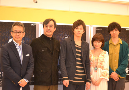 舞台『耳なし芳一』チケット情報小 泉八雲(ラフカディオ・ハーン)が著した作品集『怪談』のなかの一編、『耳なし芳一のはなし』を原作に、平家物語弾き語りの名手、盲目の琵琶法師・芳一の 運命を描くもの。宮本によれば「小泉八雲自身も登場するし、原文からイマジネーションをふくらませて芳一の過去なども描く。多重構造になっていて、怪談で はあるが、その奥に潜む人間の本質に迫っていく」作品だ。主人公・芳一を山本、源氏に追われ幼くして命を落とした安徳天皇を安倍が演じる。昨 年は蜷川幸雄演出『トロイラスとクレシダ』に出演、舞台にも意欲的な山本は「宮本亜門さんとはずっと仕事でご一緒したいと思っていました。今回タイミング よくお話をいただけて、これも運命と思って一生懸命取り組みたい」、宮本作品は2009年の『三文オペラ』以来の出演となる安倍は「この役はどうしても安 倍なつみにしかできないと熱いオファーをいただいて、すごくうれしかった。期待に応えられるかどうかわからないが精一杯頑張りたい」とそれぞれ意気込みを 語った。耳なし芳一といえば、魔よけのため全身に経文を書き込むシーンがある。宮本は「芳一が全裸になってお経をばーっと書くという。も ちろんそれが最後にないとね」と笑顔でリップサービス。これに応えて山本は「芳一が体を鍛えていたわけはないでしょうけど、表に出ていく以上はきれいな体 でと、体作りを頑張っています」と熱演を宣言した。4月にKAAT 神奈川芸術劇場 ホールで上演する『耳なし芳一』の初顔合わせが行われ、出演者の山本裕典、安倍なつみ、橋本淳、益岡徹、演出の宮本亜門が会見に出席した。