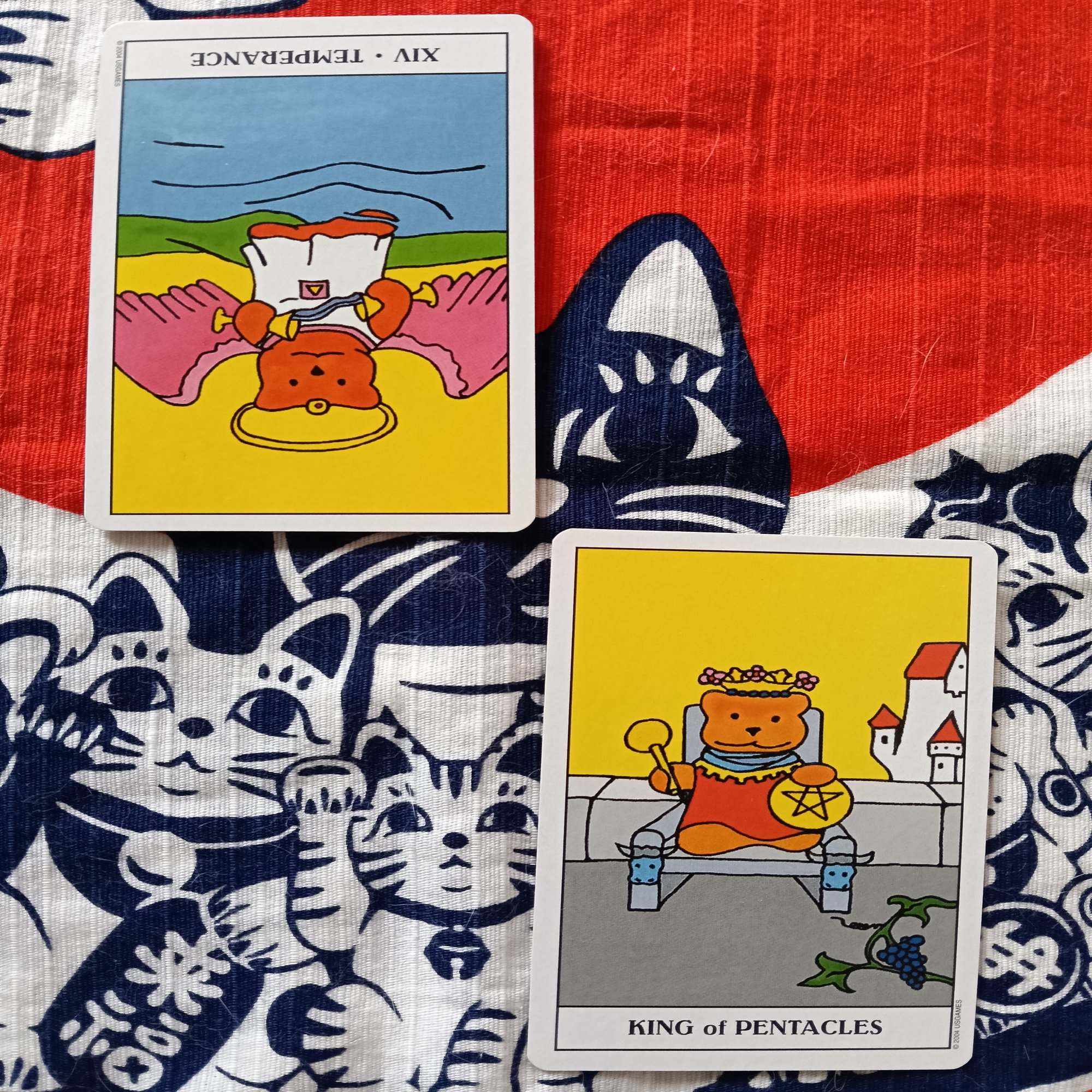 引いたカードは「節制(逆位置)」、そして飛び出してきたのは「ペンタクルスのキング」