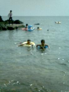 ねねは、お友達の子とずぅ~っと海につかりっぱなし。(´Д`;)