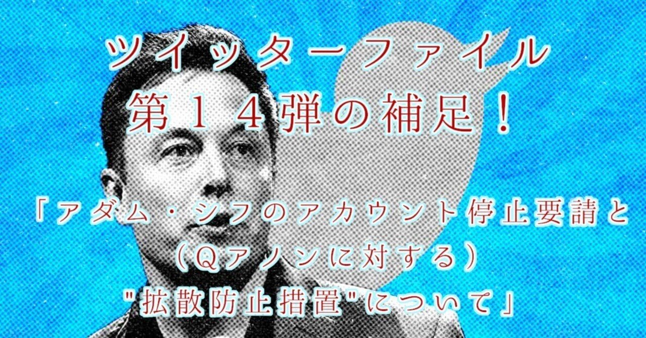 ツイッターファイル 第14弾の補足! 「アダム・シフのアカウント停止要請と (Qアノンに対する)"拡散防止措置"について」