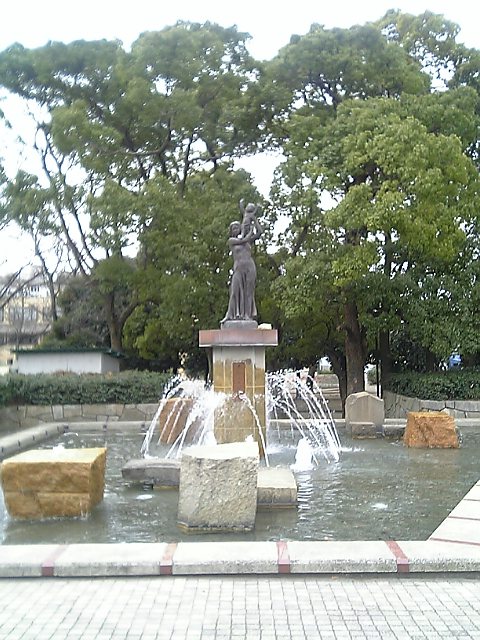 早朝サウナに行った。サウナからの帰りに美しくない公園があったので、ひと息。噴水と母子像を見た。