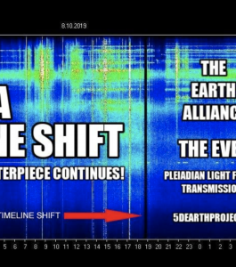 下の(2019年8月10日)地球のシューマン共鳴グラフ上の黒塗りの電磁空間は、世界の間の時間のないギャップ(no-time gap)です。そこでは3Dタイムラインが数分で完全に折り畳まれ、5Dタイムラインに統合されています!