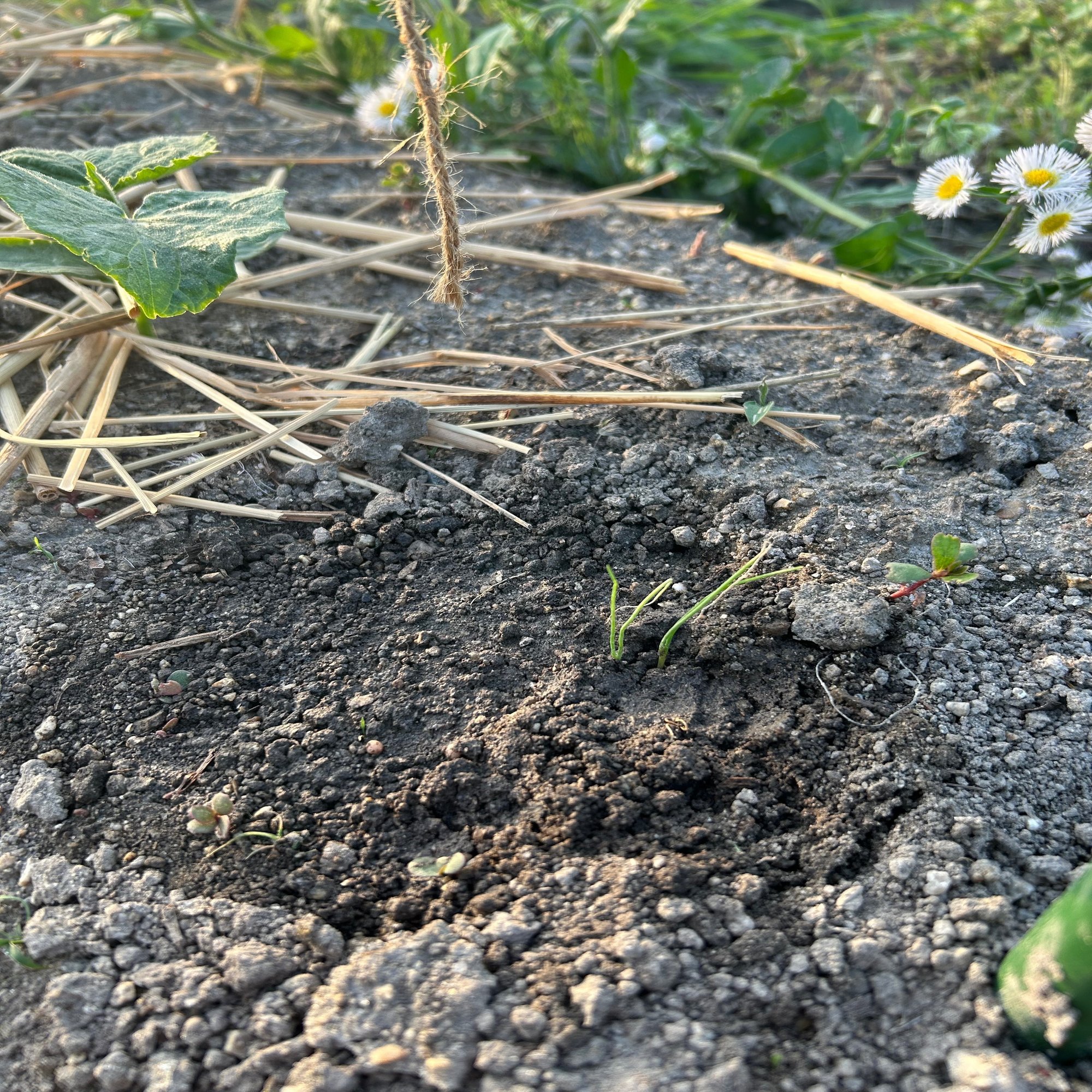 種まきしました。それもカボチャとトウモロコシのまわりに。…この植え方はもしや!?😁