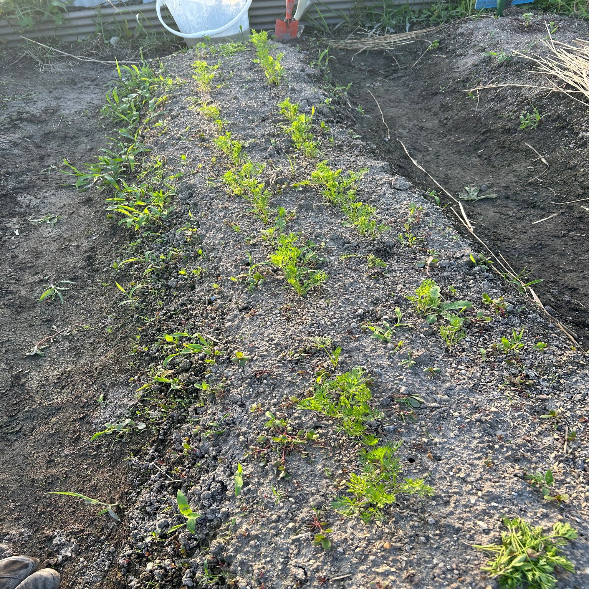 いい感じになってくれたので、混み混みしてる所を間引きました。すかすかな所は、発芽がうまくいかなっただけです〜