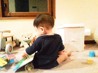 だんだんなれてきて、おじいちゃんに何度も積み木を「どうぞ」ってできたね!