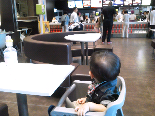 普段ジャンクフード好きではない方なのであまり行かないけど、たまにはね。ヒルズ店さすがに洗練されてました。拓海にはまだ食べさせたくなかったので、パンと野菜ハンバーグとホットケーキを持参。全部ペロリと食べちゃった。買った牛乳も150ccぐらい飲んだねー。