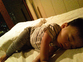 拓海は文字通りどこ吹く風?!で、車中で肉まんを2/3ほど余裕で平らげ、牛乳をゴクゴク飲み、家についたら鮭の西京焼きやふりかけオニギリを食べ、足りないまたは眠いとひと騒ぎし(←どっちか分からん・・)、お風呂に入って寝ちゃいました。