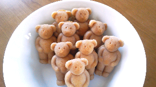 バレンタイン、まだチョコは食べさせてないのでクマのパンケーキ。