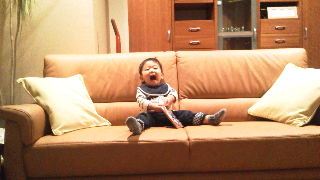 今日は、新しいソファーに座って絵本を自分でめくっていました。大人びていてかわいかったので写真を撮ろうと思い「笑ってー」といったら「アハハー」と笑った!偶然?
