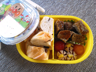 初お弁当箱、悩んだ末にアンパンマンに決定。