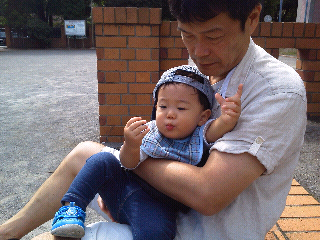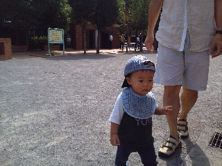 公園でドーベルマンに会いました。背中に乗っていいよーって飼い主さんが言ってくれたのに、拓海拒否。もったいなーい。怖かったのかな?怖いとかそういう感覚ってどこで覚えるんだろう?条件反射?私たち親は全く怖がってないのに不思議。