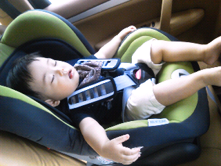 小学生のお兄ちゃんのあとを追いかけて階段登ったり、水槽見たり、1時間ちょっと遊んでお昼前になったので撤収。帰り道、バギーでスヤスヤ寝ちゃいました。