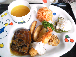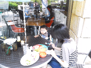 ランチは13階の洋食レストラン。結構混んでたけど、テラス席が空いてたのでそちらへ。美味しそうなお子様ランチ、たくさん食べました!エビフライはまだアレルギーが怖いのでパス、唐揚げは固かったのでパス、それ以外はパクパク。食べ終わったと思ったらもうじっとしていられなくて、脱走。テラス席助かる~。パパが後を追っかけてる間に私は高速食い。相変わらず食べた気しないんですけどー。いつになったら落ち着いて食べられるんだろうか?!