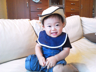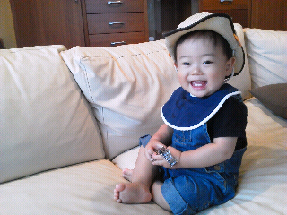去年買ったオーバーオール、やっとちょうど良い大きさに成長したので着せてみたら・・・田植えに行くおっちゃん?!
