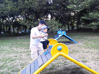 夕方、パパが仕事終わったので車で公園にお出かけ。