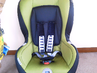 レーマーというヨーロッパのもの。シートベルトで固定するのではなくがちっとジョイントツール?で固定するので安全らしい。パパのこだわりです。カラーはグリーンにしてみました。