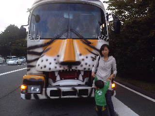 ライオンバス、迫力満点で面白かった~!拓海もそんなに怯えず楽しんでました。ライオンがすぐ目の前で「ガー」って口開けて鶏肉食べたね~。