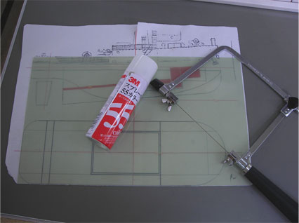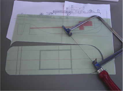 僕の主力兵器:糸鋸で貼り付けた図面ごと切ります。