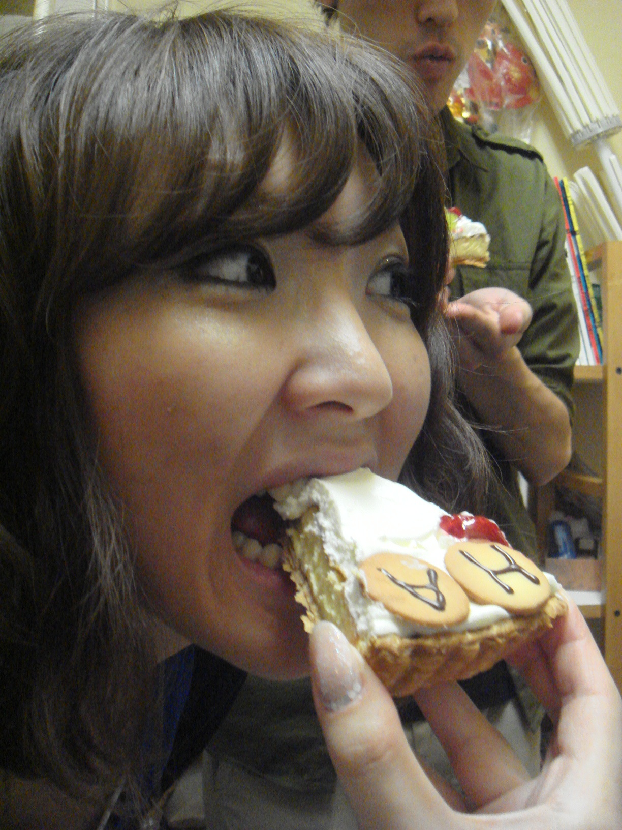 顔・・顔・・・・がデカイ!!ケーキ以外にもなにかを食べそうです!!