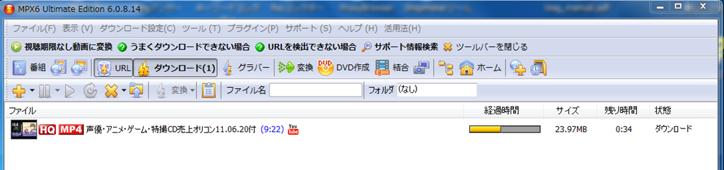 ※ダウンロードしたFLVファイルは、Windowsメディアプレイヤーでは再生できません。