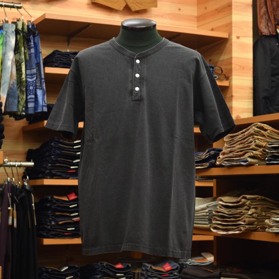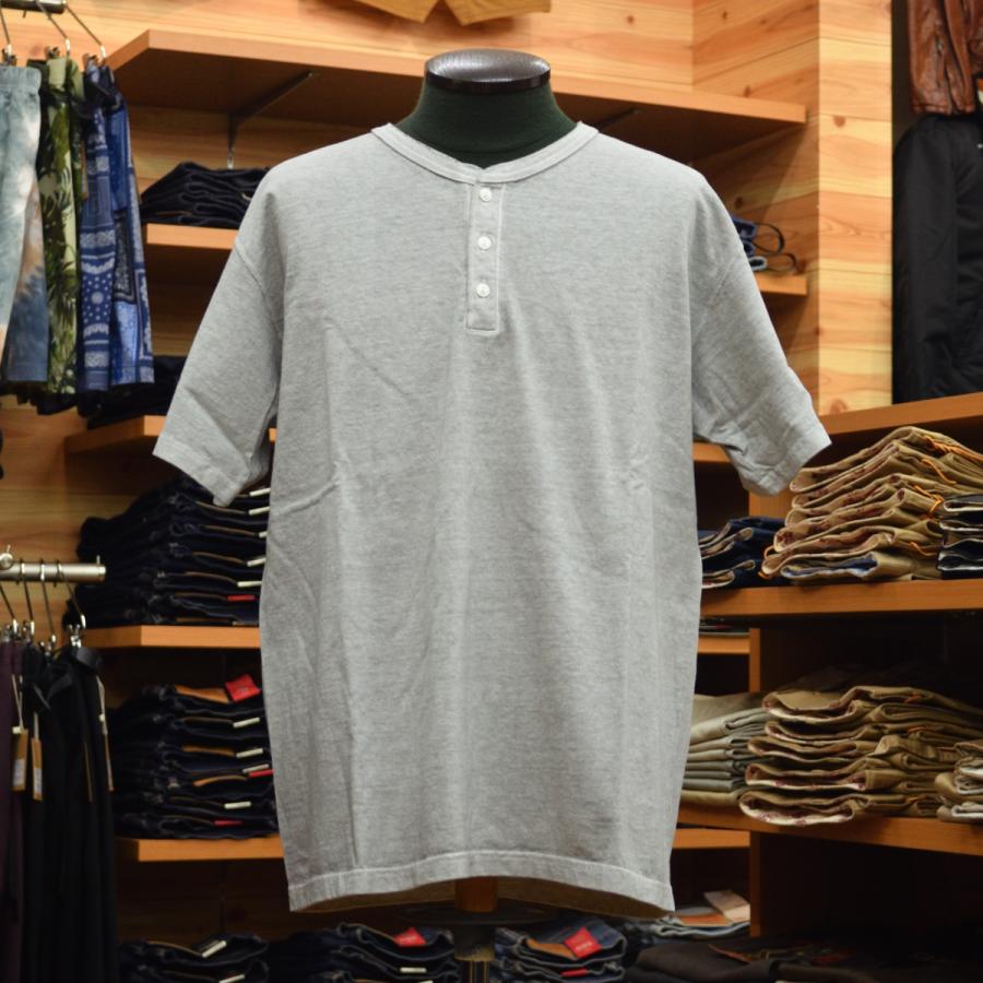 ヘンリーネック特有のアクの強さを感じさせない、シンプルでラフな仕上がりのヘンリーネックTシャツ