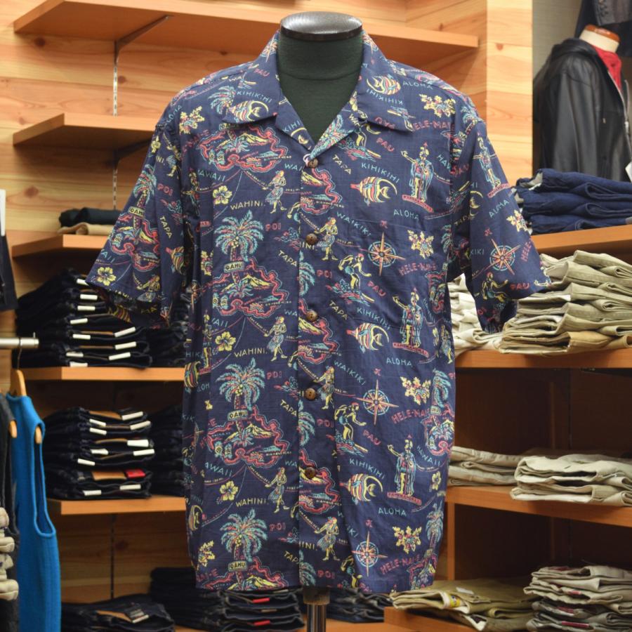 画家フランク・マッキントッシュによって描かれたこのデザインは当時から人気を博し、現代においても世界中のコレクターたちが愛してやまないヴィンテージアロハシャツの名作のひとつ