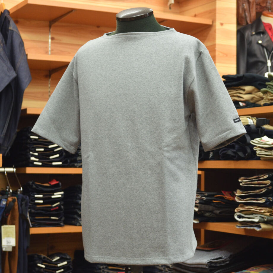 画面を斜めに横切る青色のぼかしで揺蕩う水の流れを表現、水中を漂う3匹の亀を上から覗き込むような構図で描写。甲羅に藻がついた一番下の「蓑亀(みのがめ)」は長寿の象徴、親亀とともに子・孫亀も描かれ、子孫繁栄を表現。この花鳥画シリーズは長大判と呼ばれる縦長の判型で、吉祥の掛軸の代わりとして制作された。実物は水面の青い部分に藍顔料を用いている。それに倣い、このシャツも藍顔料を使って捺染しているのが特徴。また当時、亀の頭の部分には銀が使われていたが、シャツ用としては適さないため実物の色合いに近い銀色の顔料を使用している。
