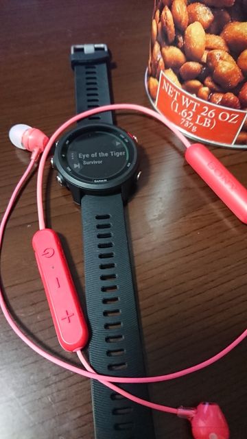 そしてそして、このガーミン245music、なんと時計の中に音楽を500曲ほど入れられてBluetoothイヤホンで再生できるのですよね。