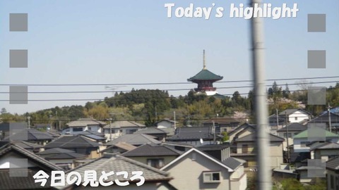 その向こうに、成田山新勝寺の三重塔が見える。犬山にあるのは成田山の名古屋別院だ。