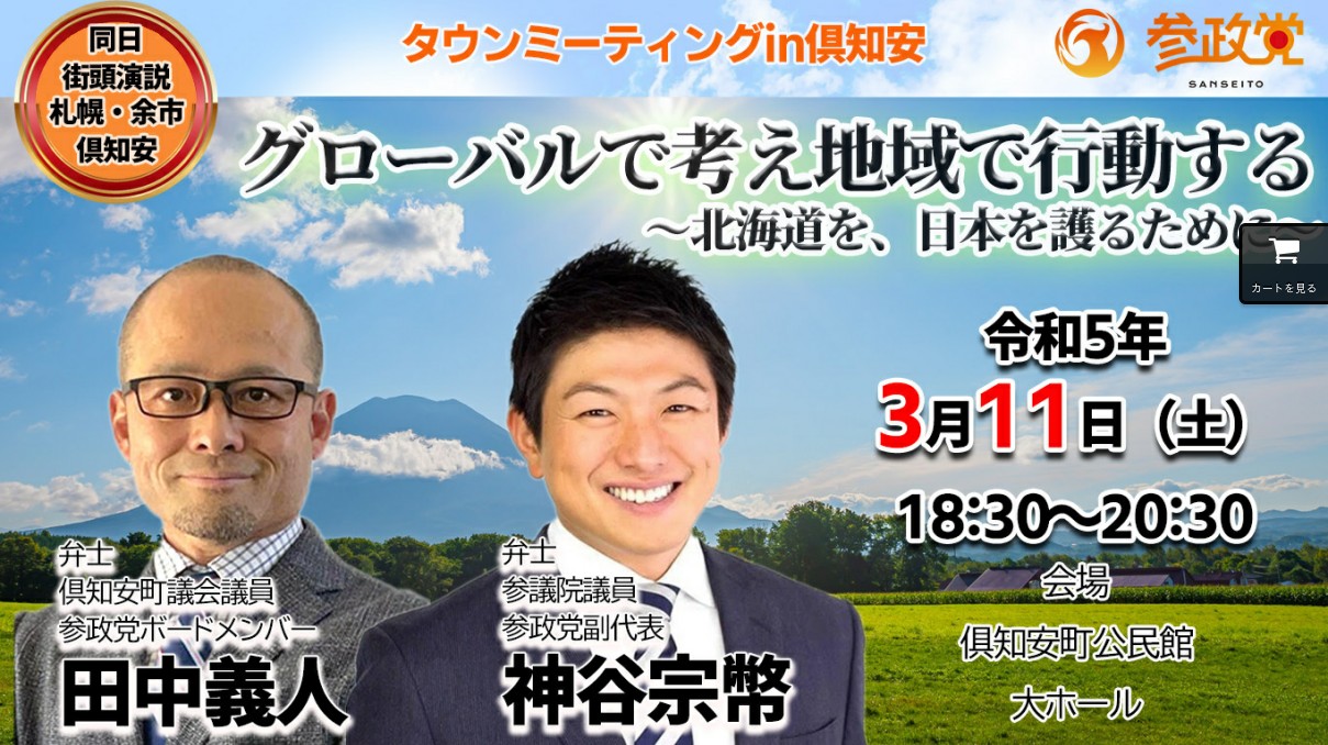 倶知安にて、タウンミーティングがあります。街頭演説では言えないことを、より深く話してくださいます。お申し込みはこちらです![]()