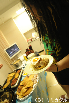 そう、ケータリングルームで本番前に夕食の調達です!w