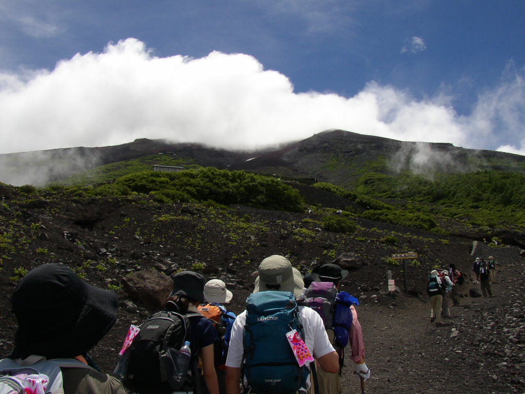 予定は、五合目~八合目まで登って山小屋で寝る