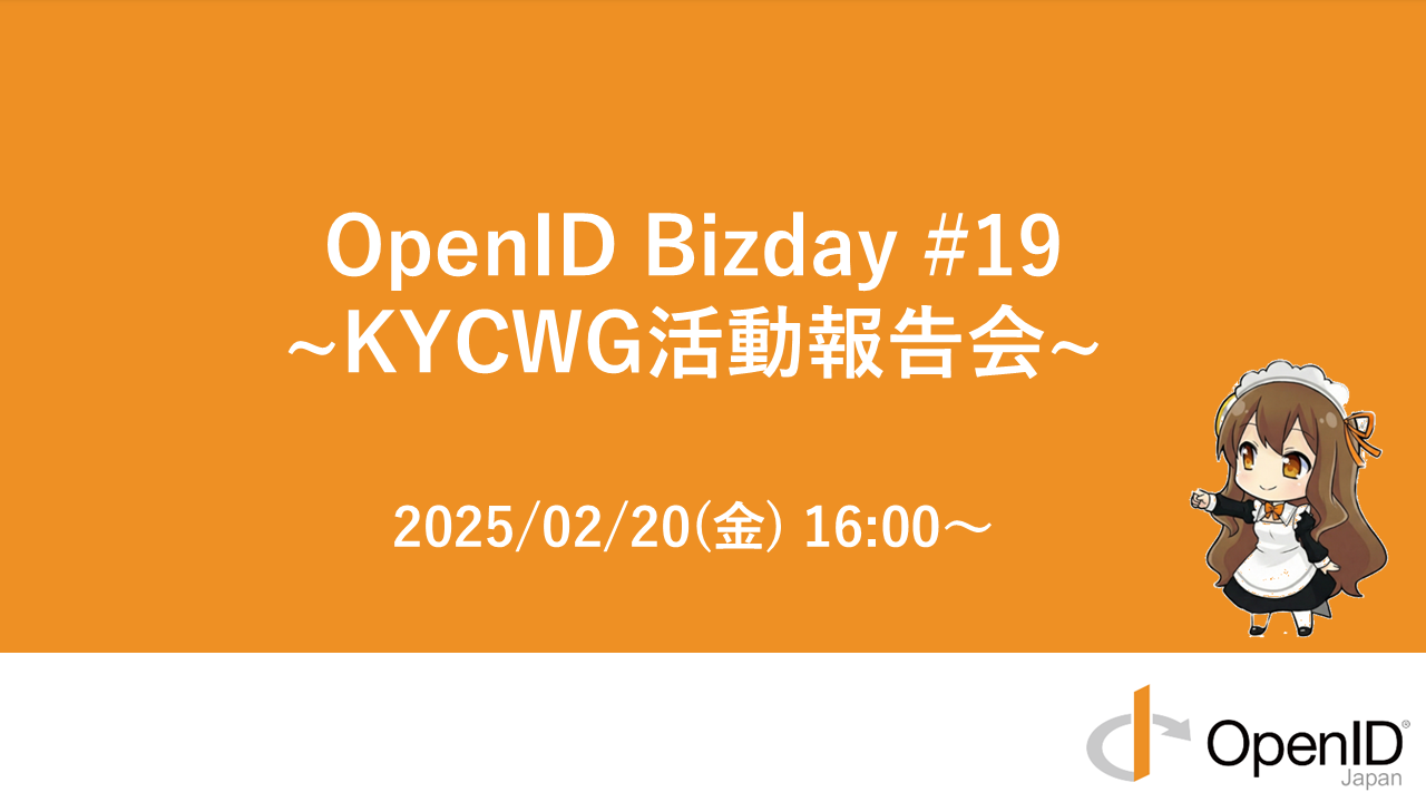OpenID BizDay #19 ~ KYCWG活動報告会 (2026/02/20 16:00〜)# OpenID BizDay #19 ~ KYCWG活動報告会 現在、私たちの社会において「デジタルアイデンティティ」と「本人確認」の重要性はかつてないほど高まっています。昨今、口座乗っ取りなどの不正アクセス被害が相次いで発生しており、その手口の巧妙化は深刻な社会問題となっています。 こうした課題に対し、安全で利便性の高いオンライン本人確認の普及を目…openid.connpass.com