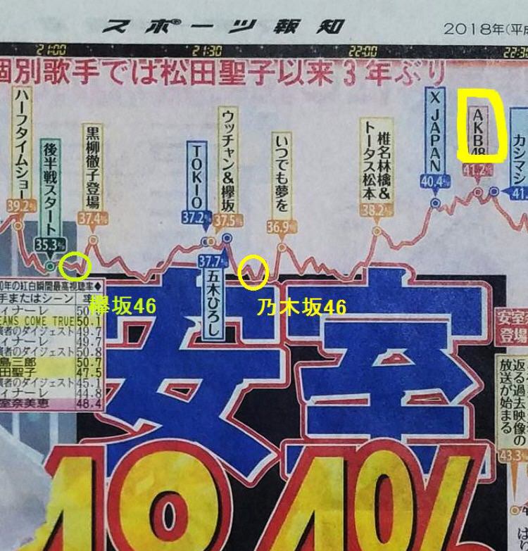 にもかかわらず、ふたを開けてみれば、乃木坂も欅坂も、全出演者中最下位に近い視聴率しかとれていないのです。
