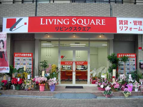 オープン!本日、リビングスクエアがオープンしました。朝一番からオーナー様・同業者の方々・友人・お客様とたくさんのお祝いの花や品々が届きました。感無量です。今まで不動産業をしてきてこれだけたくさんの方々が応援してくれていると実感しました。これからが本当の勝負です。社員一丸となって頑張っていきます。最後に75件のお祝いを送ってくださった皆様、本当にありがとうございました。
