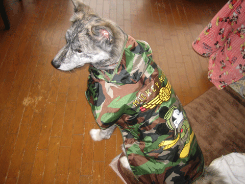 ゆっくり休日!この2日~5日の3日間の休日はひさしぶりにどこにも出かけずゆっくりしました。4日の日は家のアミ戸の張替えと障子の張替えを嫁さんとしました。5日はボクシングの亀田兄弟を見て盛り上がり、満足・満足!食べ続け・飲み続けのおかげで体重が2キロアップ!やばい!これからがんばってジムで汗を流して体重を戻したいと思います!今日の我が家の秋田犬 美人(ミイト)は昨日、伊丹のダイヤモンドシティでまたまたミイトのカッパを買いました!ミッキーさんが背中についていてかわいいと嫁さんは言ってました。その写真です!