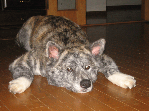 真夏の案内!今日は暑かった!昼から2組の賃貸のお客様のご案内!背中・顔と汗でボタボタでした。1組目は3件物件を見ていただき、申し込みをいただきました。2組目は宝塚方面で探しており、1件だけ見に行く予定が途中で私が「こんな物件もあるな~」というとお客様はすかさず「見ます!」。結局3件案内途中に追加し、計4件の案内になりました。まだ決まっておりませんが必ず良い物件を見つけてみせます!今日の我が家の秋田犬 美人はフローリングねカエルみたいな格好をしています。でも目はクリクリでかわいいでしょ!