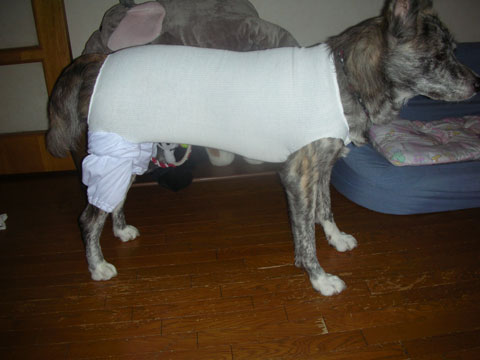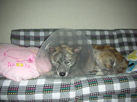 (ミイト)は術後の自宅での写真です。エリザベスカラーは本人にとってもストレスが溜まる