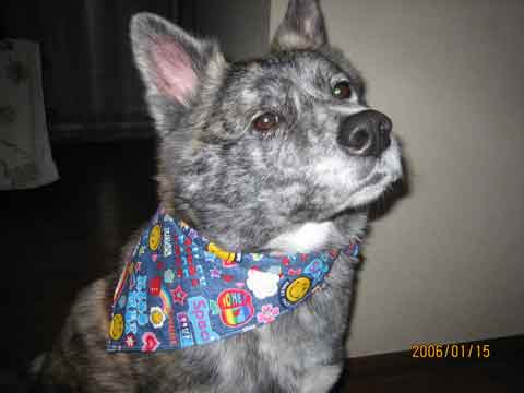 美人(ミイト)のトレードマーク!我が家の秋田犬 美人(ミイト)は外出する時は必ずバンダナを首に巻きます。今では30枚以上あるでしょうか?ペットショップで犬用バンダナを買うと500円~1000円ぐらいしますが、我が家では100円ショップでバンダナを買い、止め金具だけを付け替えて使用しています。止め金具が1つあればあとは100円ショップのバンダナで十分です。これは嫁さんのアイデアです。つい先日も余った生地を利用して嫁さんがバンダナを作ったようです。今日はその写真ですがミイトも「似合うでちょ!」みたいな感じです!