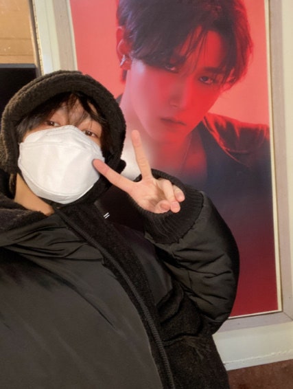 「God Damn」MV撮影中のチャンギュンに贈った커피차の前のヒョンウォンさん☺️