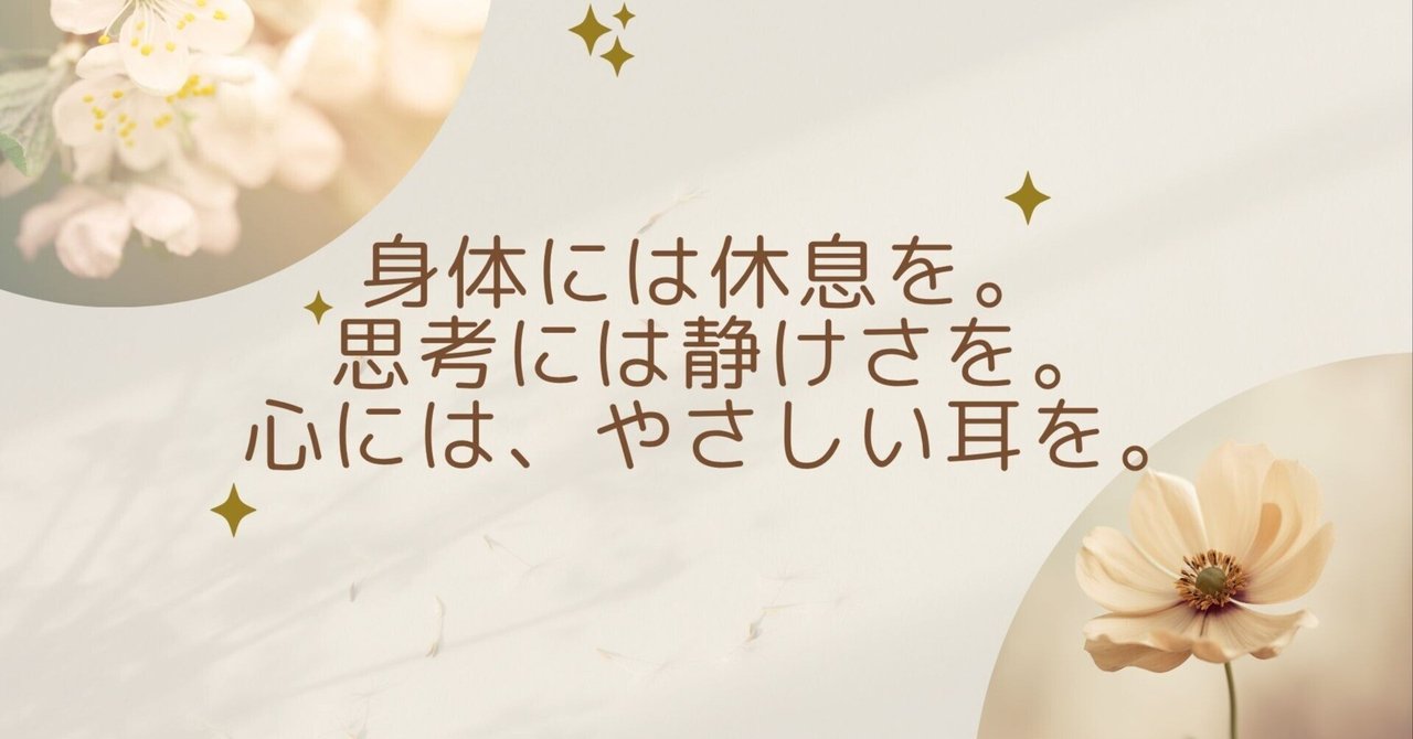 身体には休息を、思考には静けさを、心にはやさしい耳を。