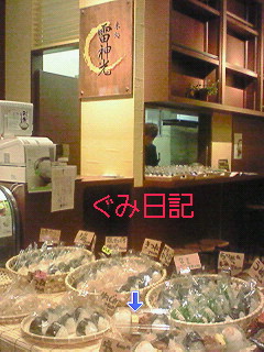 食品やお惣菜屋さんが並んでるところにある、『雷神光』らいじんこうさんにおじゃまして、だぁーいすきな明太子味と当店人気ナンバーワンのきつねって名前の油揚げがちっちゃく刻んであるおにぎりの二つをゲット!!