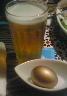 まずは乾杯にビールと金の玉子で(о^∇^о)