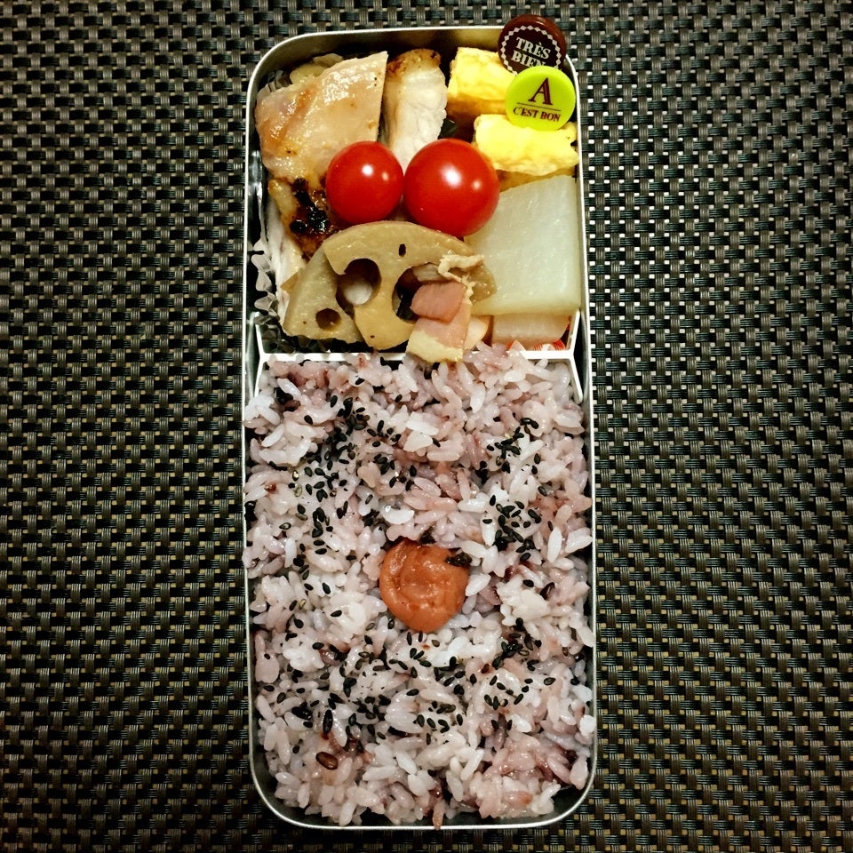 3/8の旦那様弁当 おはようございます♪お弁当久しぶりです*豚ロースの味噌漬け焼き*卵焼き*大根とソーセージのコンソメ煮*蓮根のきんぴら*ミニトマトご飯は黒米入り。白っぽいおかずが多いですね。 myomyoさんのお料理をもっと見る
