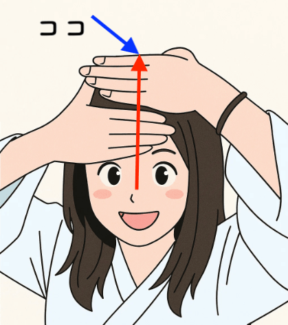 - 人差し指から小指を揃えておでこにつける