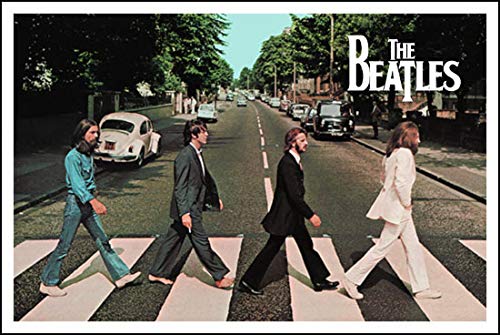 これらの飾り方は、様々にあります。前に住んでいた部屋はクリーム色 が基調(に見える)社宅です。社宅は、鉄骨が多く使われますね。その印象は、和室の室内からも想像つく(←外で常に見ていることですよね)ことがあるのですね。ありありとです。穏やかな和室と、どちらかと言うと無機質な社宅の外観のイメージをこのポスターで中和する効果は「ありました。」(個人の意見。)画面奥の森はほぼ真っ黒に見えます。前の和室では、クリーム色の室内と光が対比して、目も休まるのです。また、道路もポイントですよね。このポスターは全体に黄色くも見えました。道路はグレイです。「(この)一見ミスマッチに思う色の混ざりが、ヴィンテージに見える」ように思います。色褪せた写真の外観に近いのです。メンバーの服も、大胆にスーツ(セットアップは当時あるのかな?(笑)あると思っていました。)が翻してありますよね。風の効果ですよね。横断歩道の白と衣装の白がリンクしています。それはこの道の象徴にもなると思うのです。