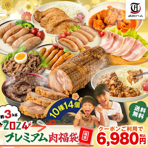 【P10倍&お得なクーポン★イベント限定】41%OFFクーポンで【6,980円☆】◆プレミアム肉福袋★10種14個入り!約3kg【 武田ハム 福袋2024 】 詰め合わせ 大容量 牛肉 豚肉 豚ばら チャーシュー 煮豚 肉 惣菜 フランク ウインナー 訳あり ギフト楽天市場${EVENT_LABEL_01_TEXT}